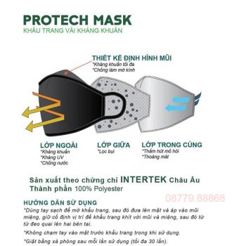 - Lớp trong cùng là một lớp vải không dệt có khả năng hút ẩm mạnh giúp ngăn dịch mũi, miệng của người đeo khi họ nói chuyện, ho, hắt hơi phát tán ra môi trường xung quanh, trọng lượng 25 gsm.